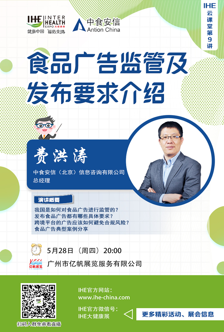 IHE大健康展云课堂第九讲:食品广告监管及发布要求介绍