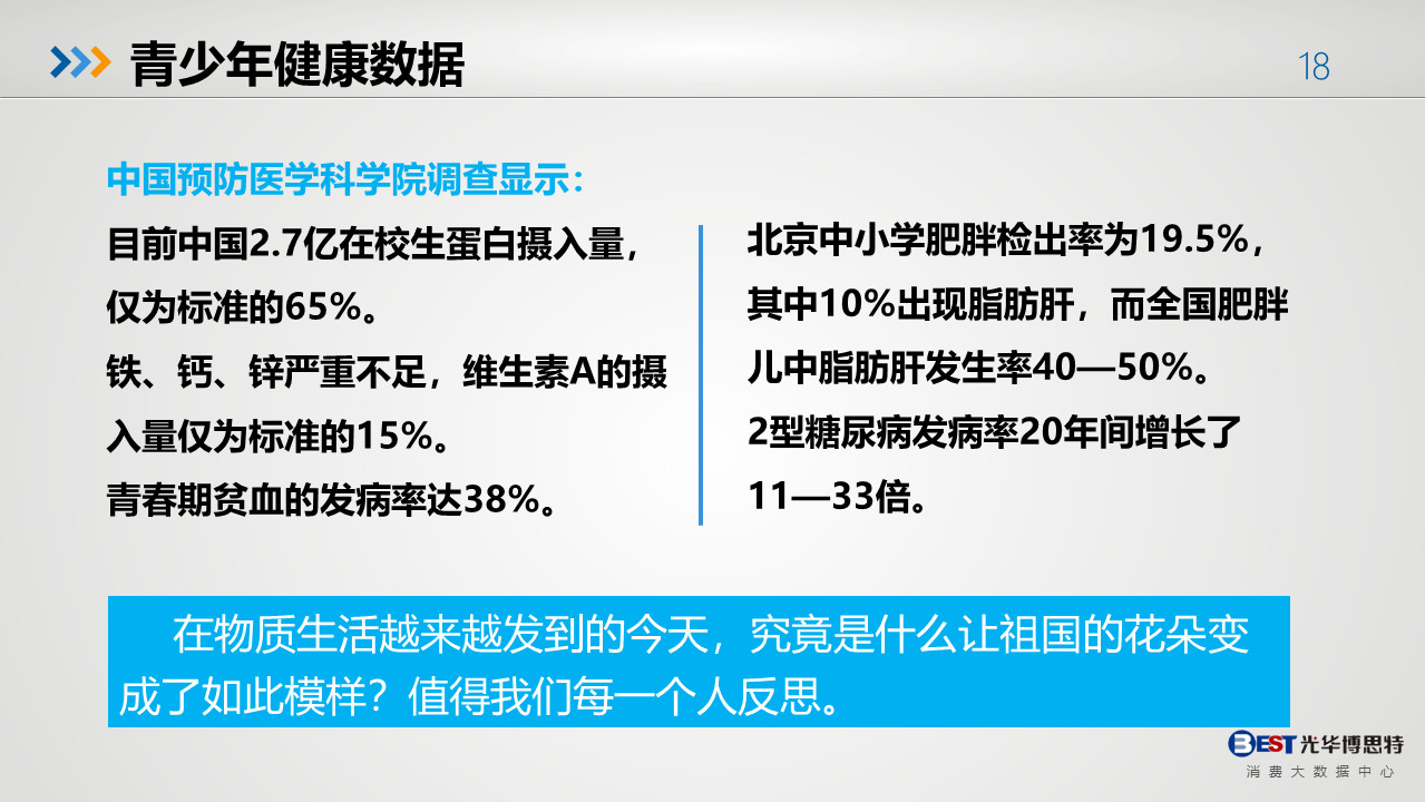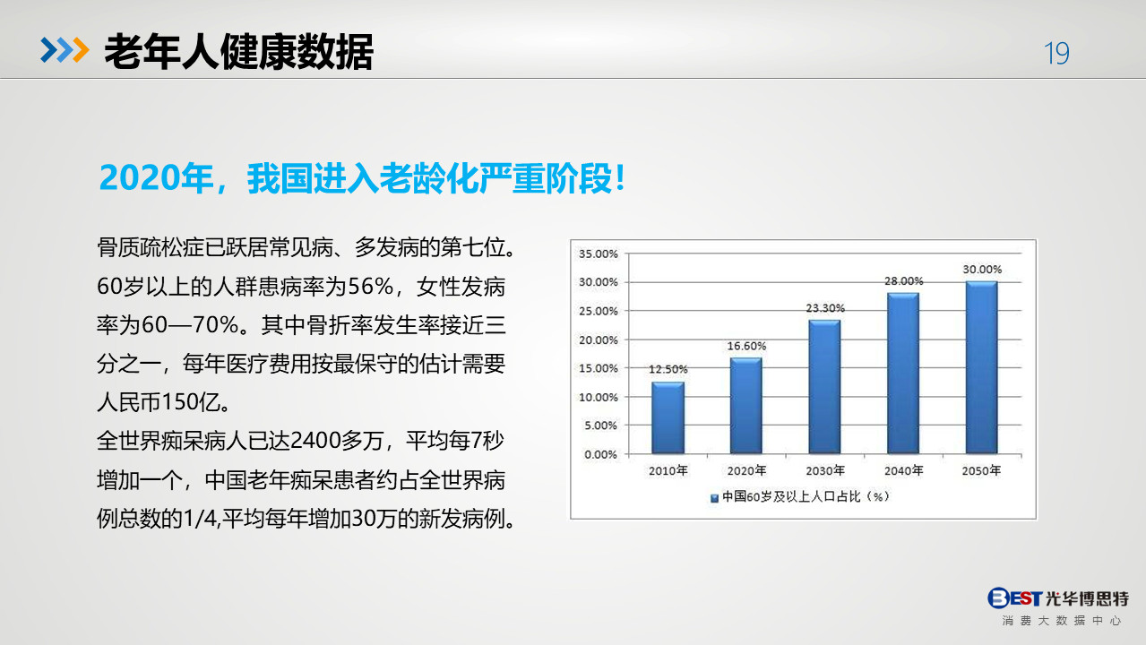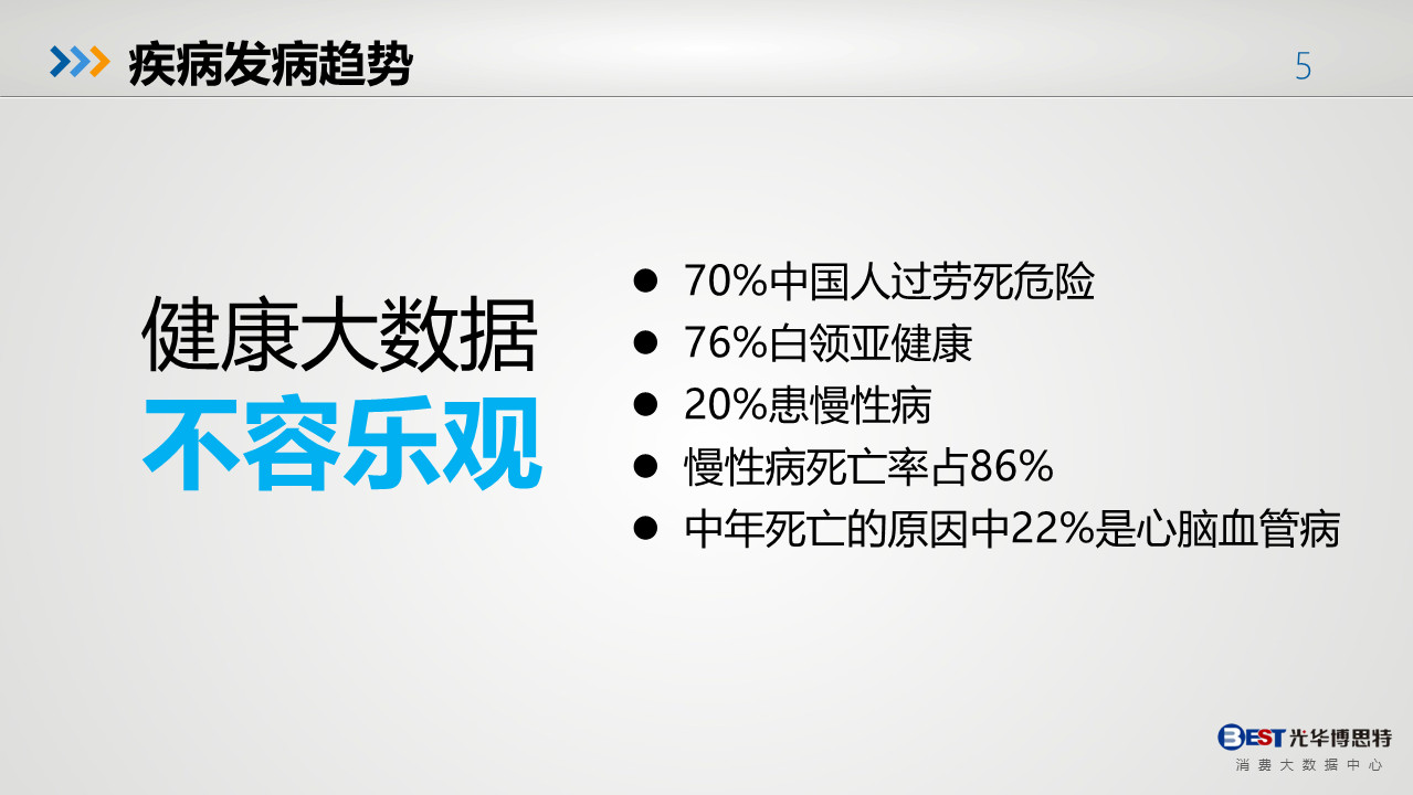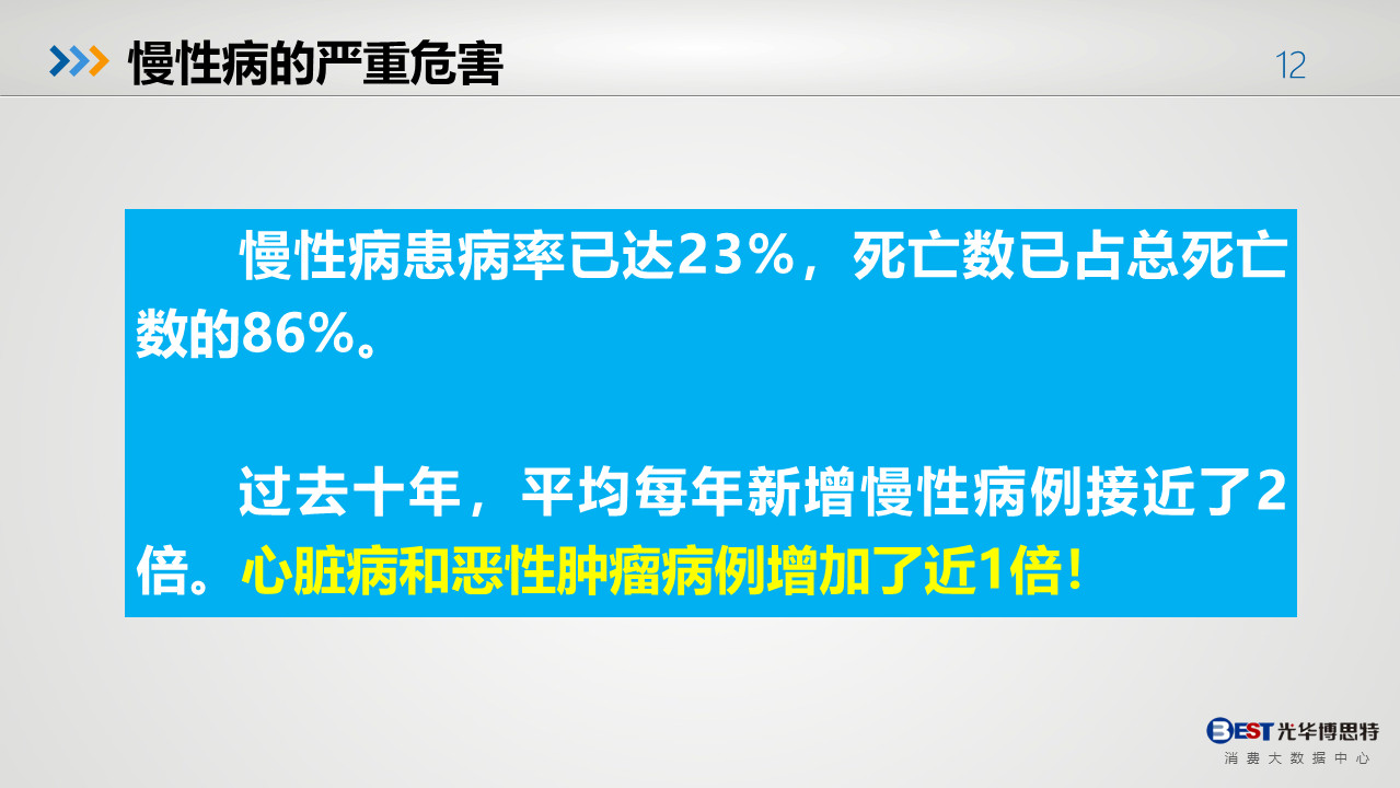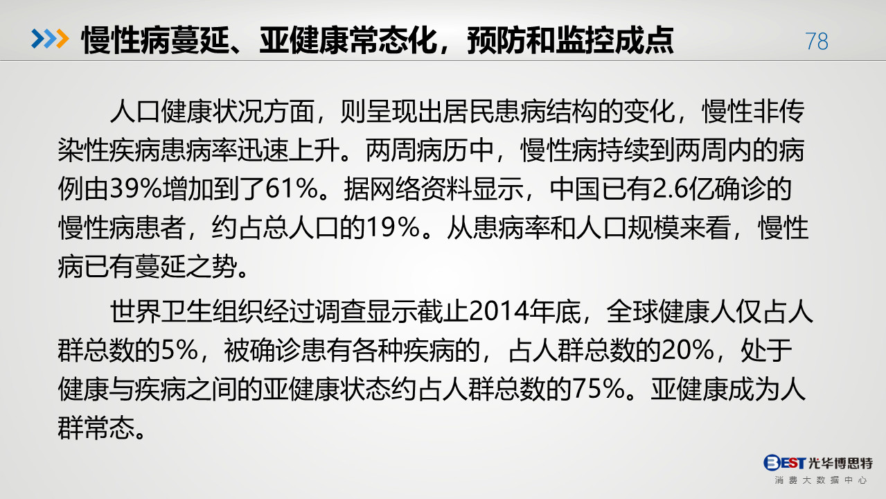 虽然国民健康问题严峻,但随着消费升级、健康意识的提高利好大健康行业各领域的发展,先后经历 “基本消费”向“高层消费”的转变。创新是引领发展的第一动力,创新更是大健康行业持续发展的生命源泉。在疫情影响下的2020,大健康行业更应抓住此次机会,充分理解健康理念,为消费者带来更好的体验。
