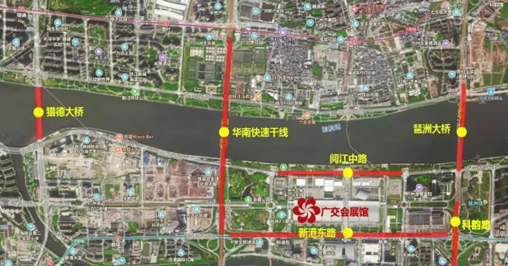 乘坐地铁2号线(嘉禾望岗站方向)至昌岗站,换8号线(万胜围站方向),并在新港东路站(可到展馆A区)下车。