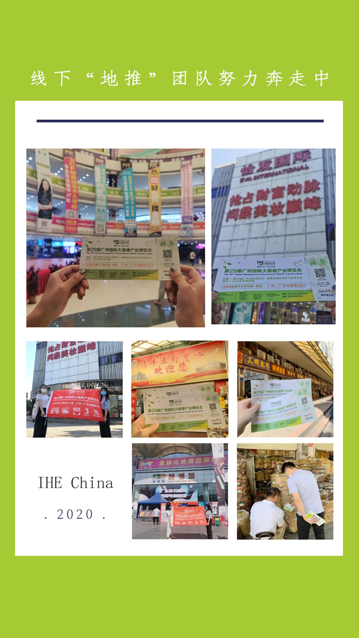 线下“地推”团队也在努力奔走中!此次推广工作, 绝大部分客商们对IHE China广州国际大健康展表现出极大的兴趣!