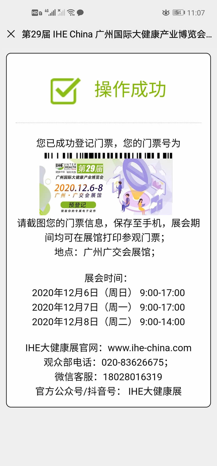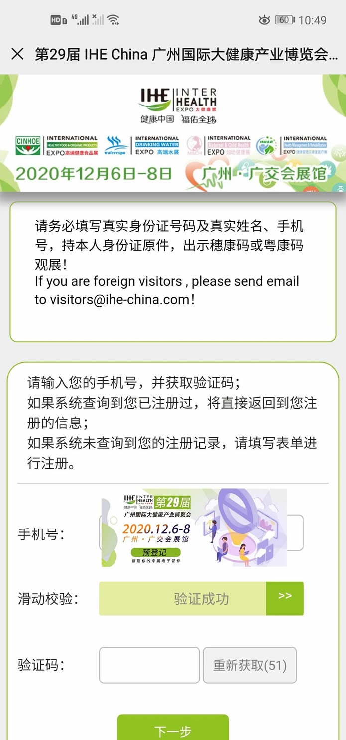 • step4:出示展会预约码(如展会相关证件可用设备验证,参展商、展会工作人员也可出示证件)并进行验证