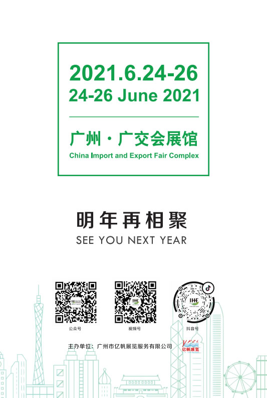 由衷感谢您对IHE China 2020的鼎力支持。有了您,IHE China得以向世界大健康行业展现中国大健康产业的健康发展,给全球行业发展带来信心。大健康行业是个朝阳行业,虽然2020我们面临这场特殊“战疫”,但IHE China因为有了您的参与,让从业人看到您的优秀与行业的潜力。您对于行业和社会经济发展起到了不可估量的标杆作用。借用一位展商的寄语“人生只有两季,努力就是旺季,不努力就是淡季,爱拼才会赢。” 我们也将加倍努力回馈各位对我们的支持和鼓励。祝愿大家在2021年取得更大的成功!让我们相约2021年IHE China广州·广交会展馆。