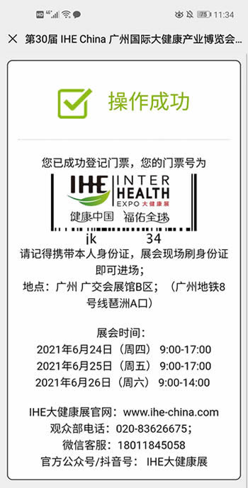 即日起,2021年第30届广州国际大健康产业博览会预登记正式开启啦!本次展会将于2021年6月24-26日在广州·广交会展馆隆重举行!预计面积数将达45,000平米,展商数达1,000+家,观众数达60,000+人次。