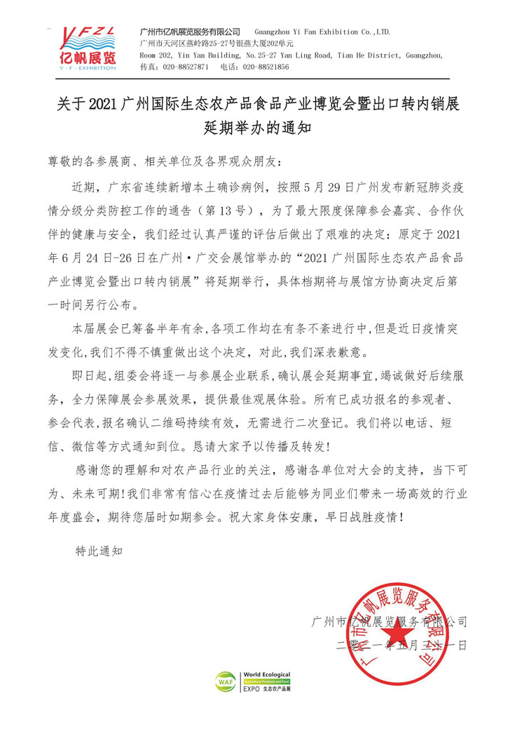 关于2021必威betway备用网暨出口转内销展延期举办通知