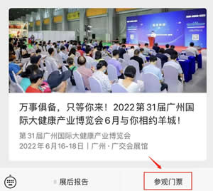 赋能双循环,领航开新局。汇集健康营养食品、滋补品、家庭医疗器械、高端水及高端进口食品、食品包装机械、中医药及养生产品、妇幼健康、健康管理/服务、健康粮油及有机食品等十余个重点展区及特色专题展为一体的“2022第31届广州国际大健康产业博览会”将于6月16-18日,在广州·广交会展馆重磅回归。