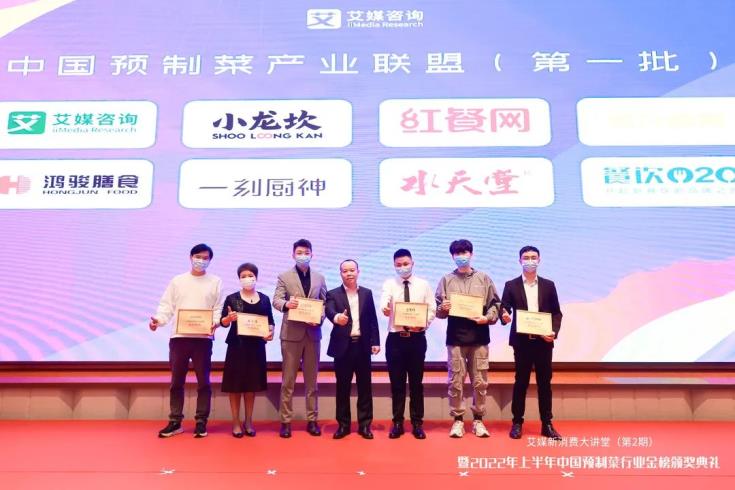 由艾媒咨询牵头成立的“中国预制菜产业联盟”,活动现场举行了启动仪式,并举行了首批中国预制菜产业联盟单位代表授牌仪式,据悉小龙坎、物只卤鹅、鸿骏膳食、水天堂、一刻厨神、红餐网、餐饮O2O等企业获得首批授牌。