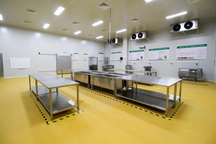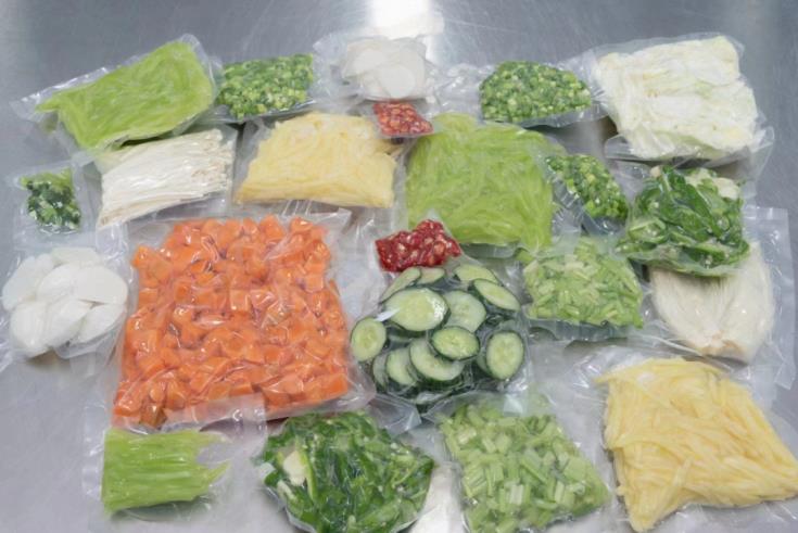 公司采用工业化流水线作业,通过将半成品预冷、包装、锁鲜、冷藏储存等措施,将个食堂的初加工端集中,各食堂的需求品种、需求量集中加工,实现资源共享,进行综合互补,为客户真正实现多样化产品供应,从而改变产品单一化的局面。
