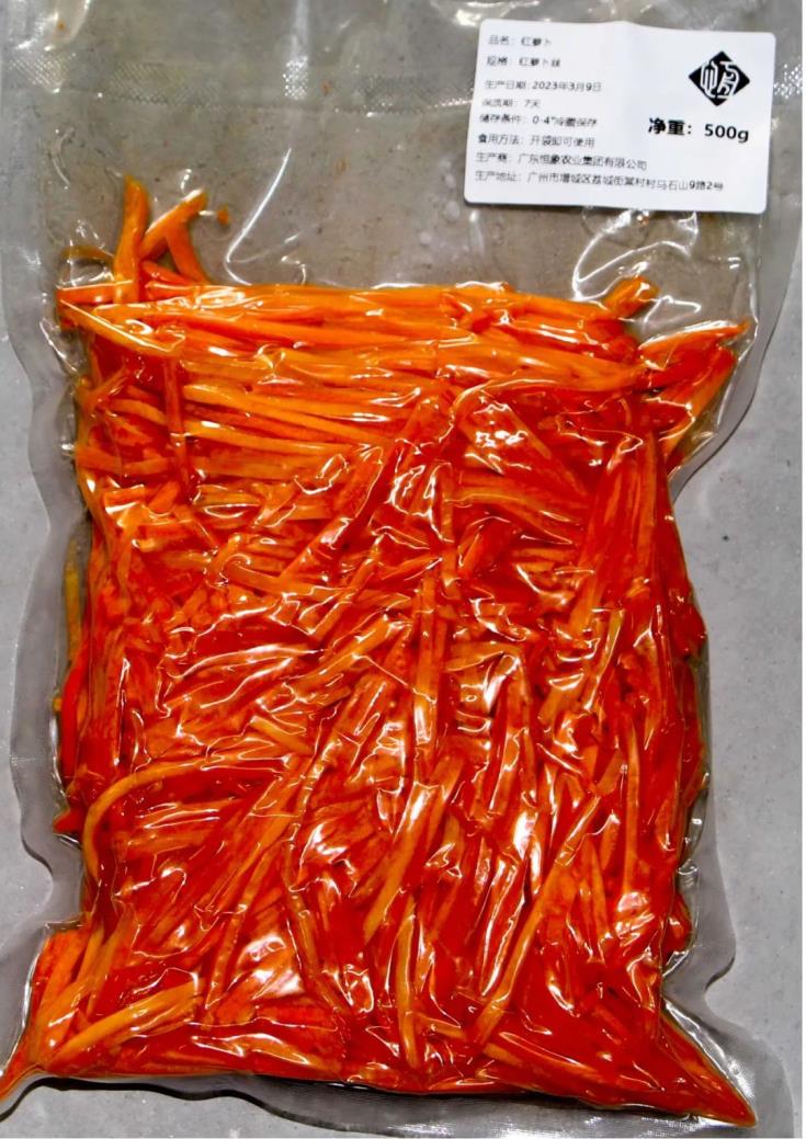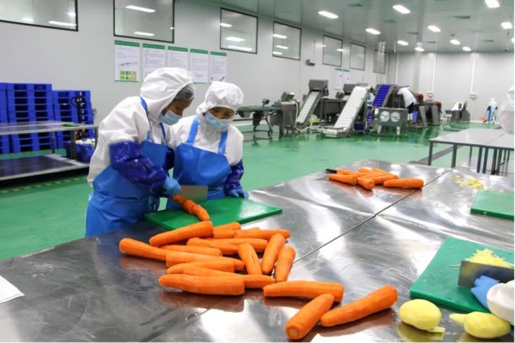 公司采用工业化流水线作业,通过将半成品预冷、包装、锁鲜、冷藏储存等措施,将个食堂的初加工端集中,各食堂的需求品种、需求量集中加工,实现资源共享,进行综合互补,为客户真正实现多样化产品供应,从而改变产品单一化的局面。