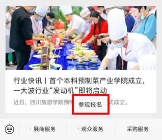 关注并进入“国际生态农产品展”微信公众平台,点击底部菜单“观众服务”-“参观报名”即可进入预登记界面。
