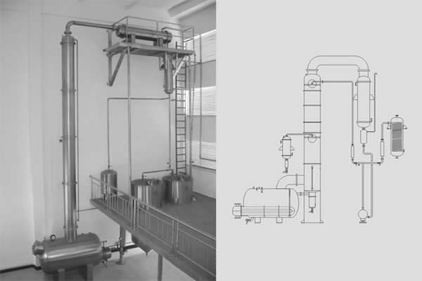 本装置适用于制药、食品、轻工、化工等行业的酒精回收,以利于降低生产成本,提高经济效益,本装置可将30%-50%的稀酒精蒸馏到90%-95%,成品酒精度要求高,可加大回流比,但相应成品产量降低,排放残液含醇度:≤0.1%,是回收酒精的专业设备。