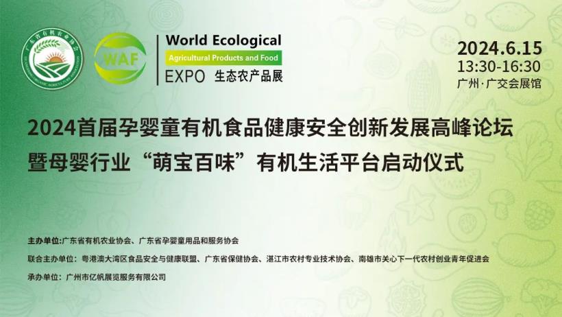 孕婴童群体对食品产品有着更高标准的绿色健康要求,是有机食品的主要消费群体之一。“2024首届孕婴童有机食品健康安全创新发展高峰论坛暨母婴行业“萌宝百味”有机生活平台启动仪式”将于6月15日下午在广州·广交会展馆举办。本次活动以“有机食品”为大方向,以“孕婴童群体”为切入点,通过打造“有机食品/有机孕婴童食品展区(主题馆)”和“2024首届有机食品&孕婴童食品健康安全创新发展大会”,聚集一批业内优秀企业、品牌商、采购商、渠道商和专家学者,共商促进有机食品产业交流合作、产业高质量发展路径。