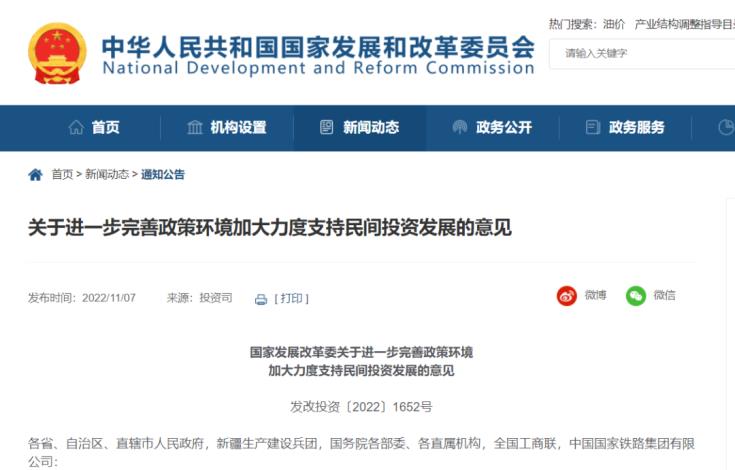 《国家发展改革委关于进一步完善政策环境加大力度支持民间投资发展的意见》指出,民间投资占全社会投资一半以上,坚持两个“毫不动摇”,加大政策支持,用市场办法、改革举措激发民间投资活力,有利于调动各方投资积极性、稳定市场预期、增加就业岗位、促进经济高质量发展,助力实现中国式现代化。